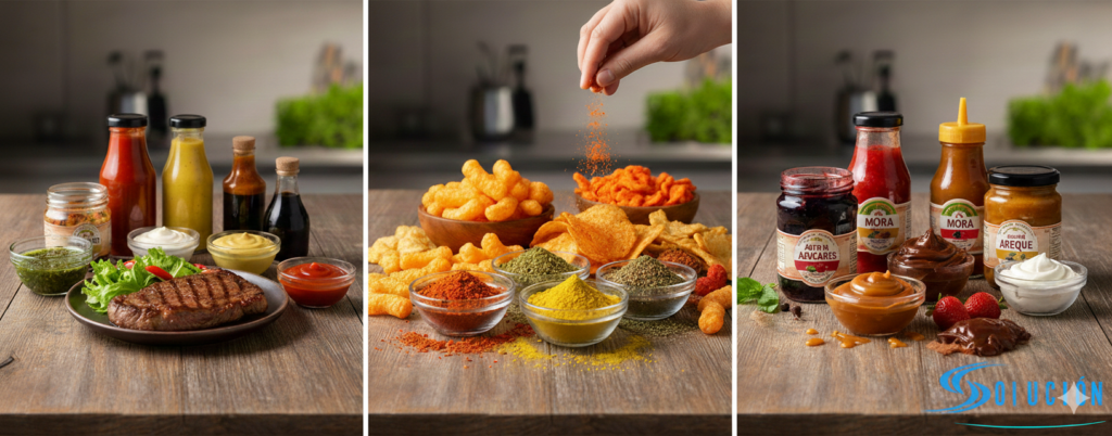 Salsas de especialidad: Tártara, salsa para camarones, glaseados para carnes y pasta de tomate especiada.